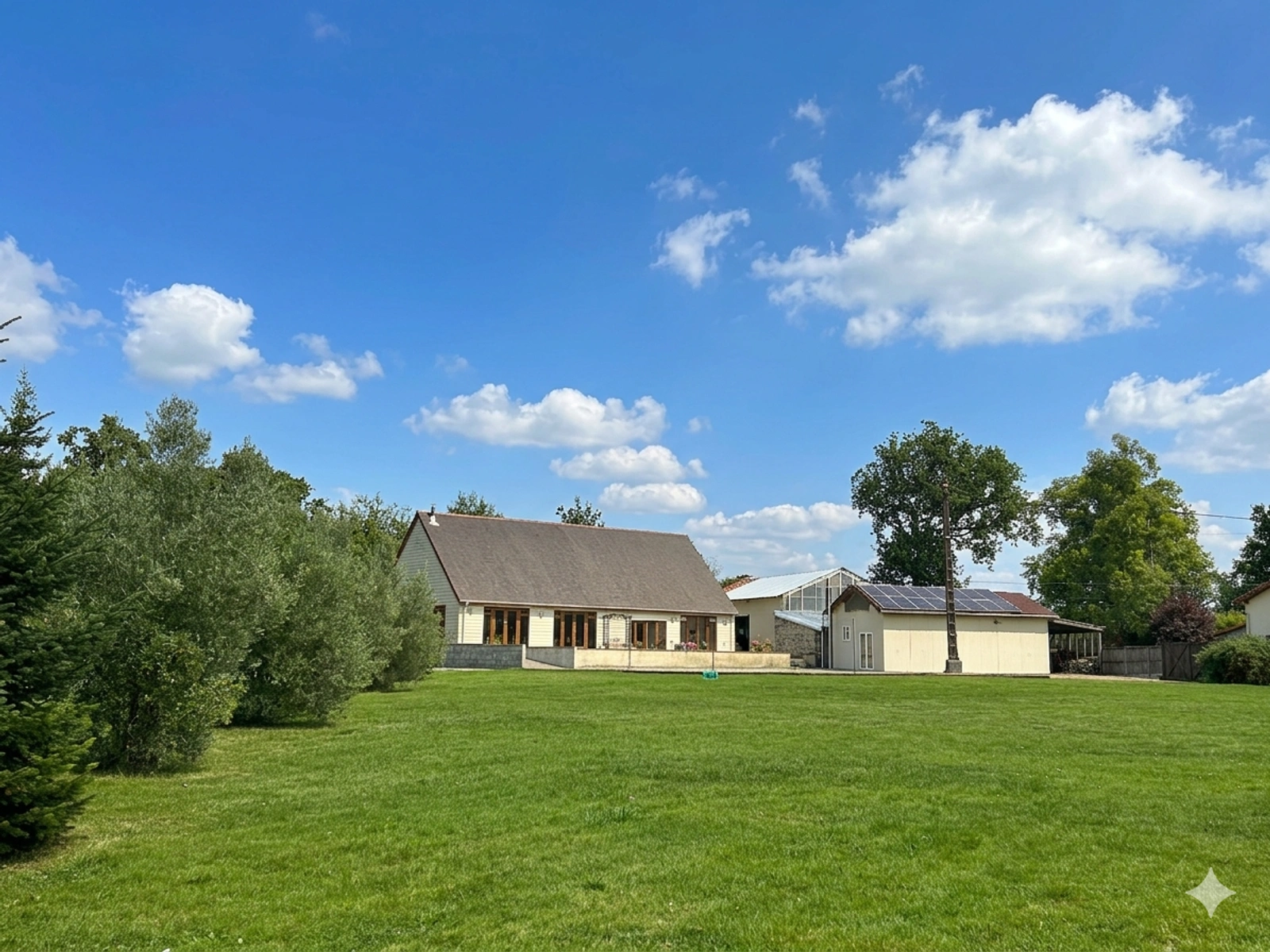 Ryan Walters, Noovimo real estate advisor, presents this property in the commune of Saint-Romain close CHATEAU GARNIER, France: An outstanding architect-designed home set at the end of a quiet cul-de-sac, enjoying south-facing exposure, open countryside views and sold with an adjoining small woodland. A true favourite, notably thanks to its impressive 80 m2 living area with a cathedral ceiling, offering exceptional volume, light and architectural appeal. The property comprises an entrance, a double living and dining room with a wood-burning stoveopening onto a fully fitted kitchen, a well-equipped utility room, four bedrooms including a master suite, an additional shower room and a separate WC. Upstairs, a games room provides flexible space for family life or leisure. Further benefits include garages and outbuildings, along with solar panels, enhancing energy efficiency DPE A. The large garden and adjoining woodland create a peaceful and private natural setting. The property is located just 15 minutes from the popular market town of Civray, offering shops, schools and amenities, and approximately 40 km from Poitiers. Poitiers-Biard Airport is around 41 km away, providing convenient national and European connections. Price: EUR280.000 FAI, including agency fees payable by the buyers of 4.9% VAT included of the net seller price, for a net seller price of EUR266.921Listing written by an independent real estate advisor. 1 - Annonce rédigée et publiée par un Agent Mandataire -