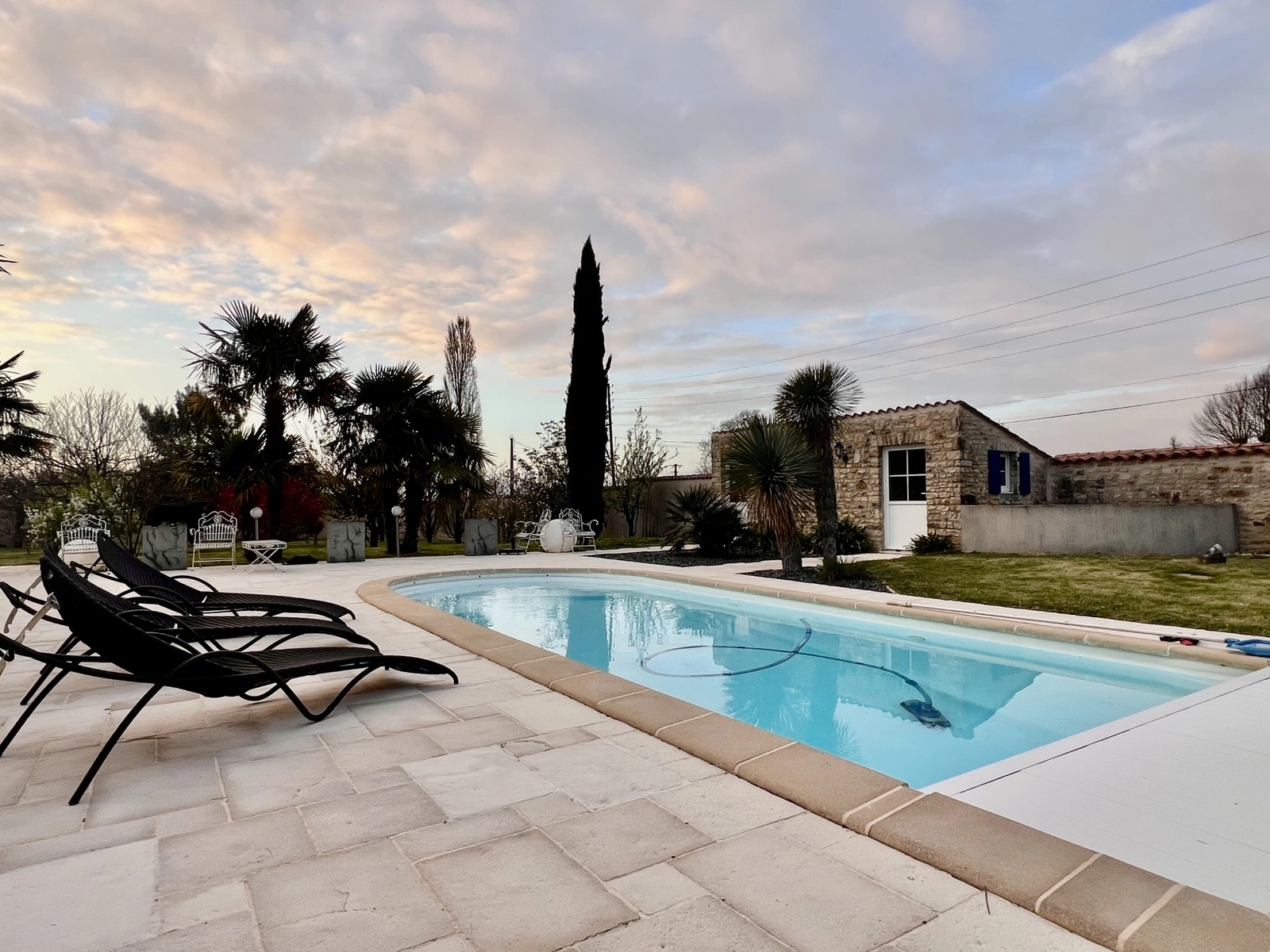Ryan Walters, property consultant with Noovimo, presents in the commune of Vanzay (79) Key Features o 3-bedroom character farmhouse with original features o Separate 2-bedroom modern property currently set out as a gîte o Large heated inground swimming pool with terrace o Private walled garden with electric gates and parking for multiple vehicles o Two outbuildings with shower room A beautiful property offering privacy and flexibility, located on the edge of a quiet village and set within a walled and gated plot. Electric gates open onto a large private driveway with parking for several vehicles. The main residence offers three bedrooms and retains all the charm of a traditional French home, with tiled floors, exposed beams and original features throughout. The heart of the house is a spacious eat-in kitchen, complemented by a cosy lounge with log burner and two bathrooms. A charming courtyard leads from the kitchen and provides access to an electric garage and workshop. The landscaped gardens are beautifully maintained with mature borders, palm trees, patios and pathways. At the centre of the garden is a large tiled heated inground swimming pool with a generous terrace, ideal for relaxing and entertaining. There are also two outbuildings. One includes a shower room and could be used as a craft space or a smaller gîte. The second property, currently set out as a gîte, offers a completely different style modern, sleek and sophisticated. It features a contemporary kitchen with island and marble worktops, a spacious living area, pellet burner heating, and a striking modern staircase leading to a home office, elegant bedrooms and a state-of-the-art bathroom with freestanding bath and separate shower. This versatile property offers excellent lifestyle and rental potential, whether you choose to live in the traditional house and rent the luxury gîte, enjoy the modern accommodation while letting the farmhouse, or simply use the additional property for friends and family, as the current owner does. Honoraires : 4,90% de 355000EUR (prix de vente honoraires exclus). Soit 372395 EUR honoraires inclus. Honoraires à la charge de l'acquéreur. Nos honoraires sont consultables surwww.noovimo.fr- Les informations sur les risques auxquels ce bien est exposé sont disponibles sur le site Géorisques :www.georisques.gouv.fr 1 - Annonce rédigée et publiée par un Agent Mandataire -