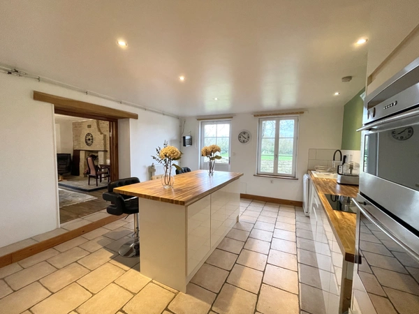 Ryan Walters, independent estate agent with Noovimo, is pleased to present this property located in the commune of Villemain (79). Set on the edge of a village, this beautiful four-bedroom stone farmhouse offers generous living space, character features and practical family living throughout. The property is gated, with a large driveway positioned at the front of the house, spanning the full frontage and providing ample off-road parking for multiple vehicles, along with plenty of turning space. As you enter through the beautiful front door, you arrive into a large and impressive tiled entrance hall featuring a fireplace, space for a central table and a stunning wooden staircase rising to the first floor, creating a wonderful first impression. The lounge is spacious and welcoming, with wooden floors and a beautiful stone fireplace positioned in the corner, allowing for dual-aspect windows at each end that flood the room with natural light. Opposite the lounge and adjoining the kitchen is a large dining room, also benefiting from dual-aspect windows. With wooden floors and a fireplace, this is an ideal space for entertaining and family gatherings. Through wooden and glass doors you enter a bright tiled kitchen with a large island at its heart. A large window and door lead out to the side of the property, where there is a fully fenced, laid-to-lawn garden adjacent. Off the kitchen you will also find a laundry room, a pantry and an all-important downstairs WC. Ascending the beautiful staircase, you arrive at a spacious landing. There are four bedrooms in total: three generous double bedrooms and one slightly smaller bedroom, currently used as an office with a desk and single bed, but easily capable of accommodating a double bed. The principal bedroom benefits from a huge en-suite shower room with dual sinks, as well as a dressing room. A large family bathroom serves the remaining bedrooms and features both a bath and a separate shower, along with access to a roof terrace. This property combines traditional stone character with light-filled, well-proportioned living spaces, all set in a peaceful village-edge location. 1. Four well-proportioned bedrooms, including a principal suite with en-suite and dressing room. 2. Large dining room, ideal for entertaining and family gatherings. 3. Character features throughout, including stone fireplaces and a beautiful wooden staircase. 4. Large gated driveway at the front providing ample off-road parking. 5. Spacious kitchen with central island and access to enclosed garden. Agency fees: 4.90% of EUR200,400 (net seller price). Total price including fees: EUR210,220. Fees payable by the buyer. Our fees are available at www.noovimo.fr Information regarding potential risks to which this property is exposed is available on the Géorisques website: www.georisques.gouv.fr. 1 - Annonce rédigée et publiée par un Agent Mandataire -